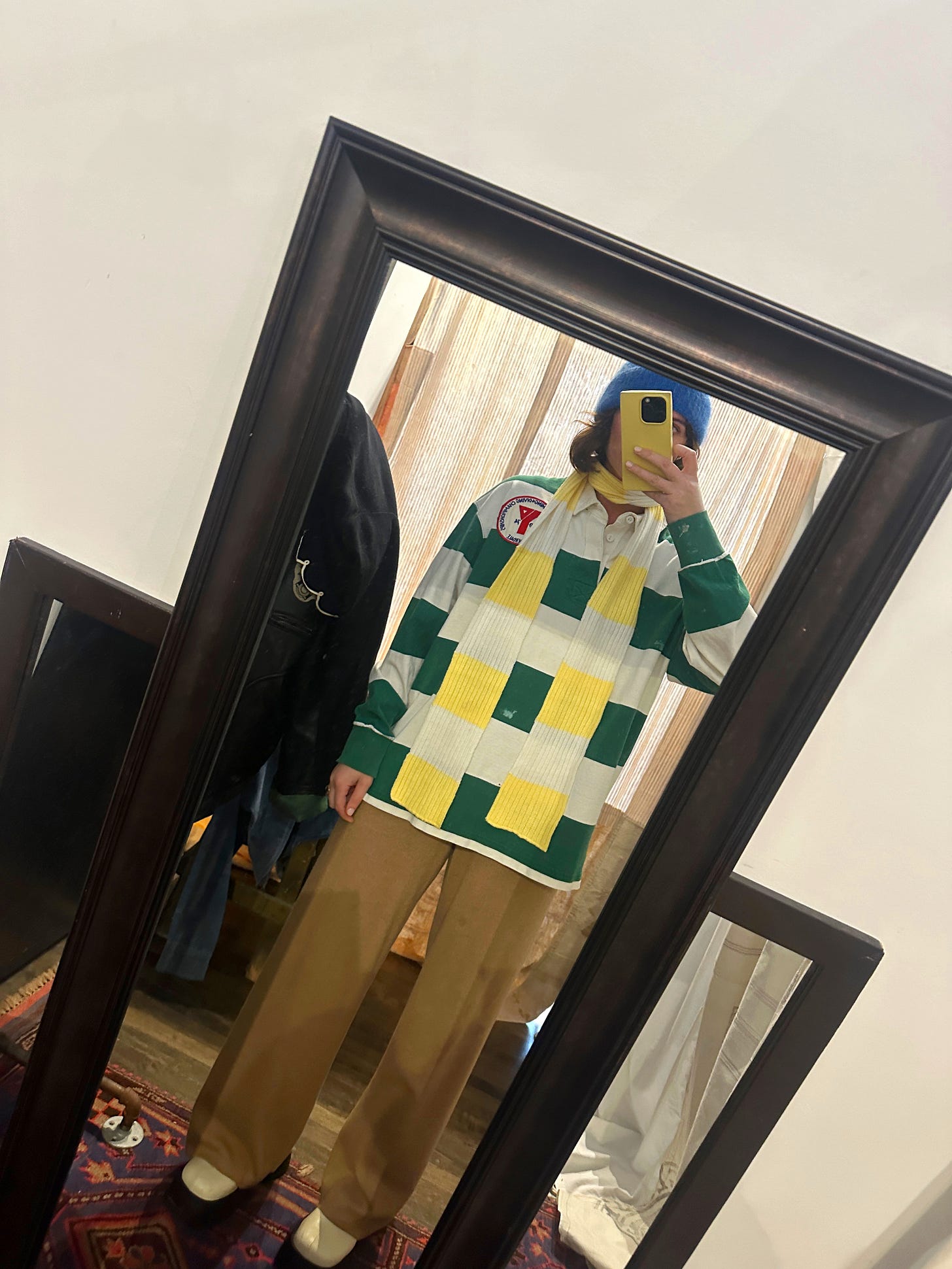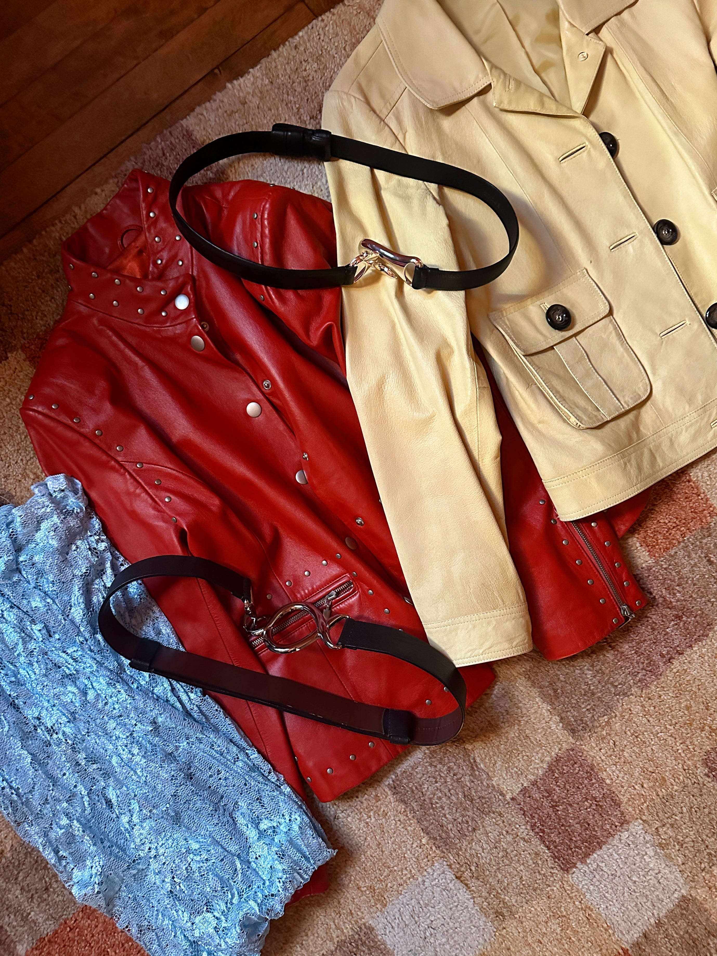 I saw a red leather jacket styled with baggy denim & ballet flats and immediately dove into Poshmark. I ended up finding the red one above for thirty-six dollars, and although it brought me flashbacks of the “Thriller” music video, I’m looking forward to styling it. My recommendation is to use keywords like “boxy leather” and “oversized fit.” I adore the butter-yellow leather alongside it. I purchased this via a local vintage dealer Melissa Davis. Their IG is openprofile.us.
